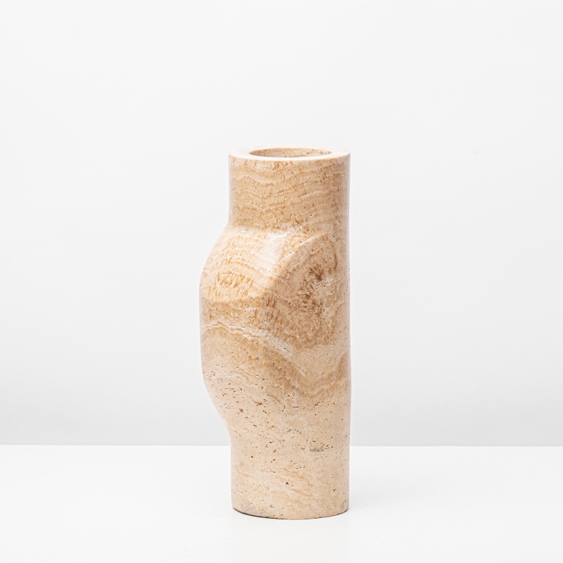 Scandinavian Modern Simple Yellow Travertine Vase Decorative Ornaments Exhibition Hall Sales Office Tea Room Marble Flower Ornaments
