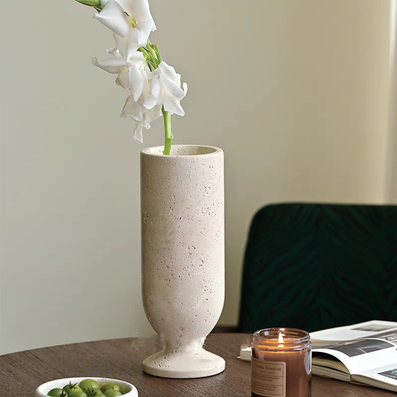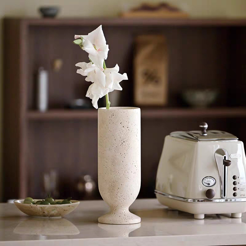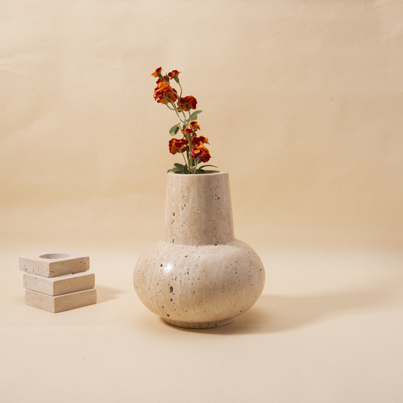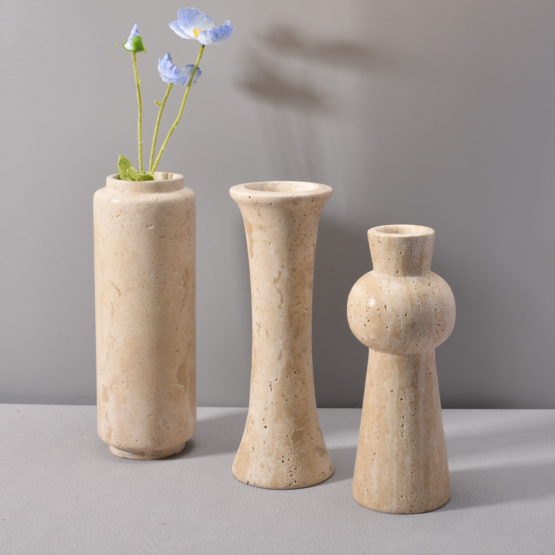 Wabi-Sabi Style Creative Decorations, Travertine Ornaments, Flower Utensils, Entrance Table, Coffee Table, Vase Ornaments