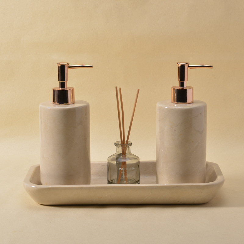Yellow Travertine Hotel Shower Gel Bottle Three-Piece Set Ceramic Liquid Hand Sanitizer Press Bottle Tray